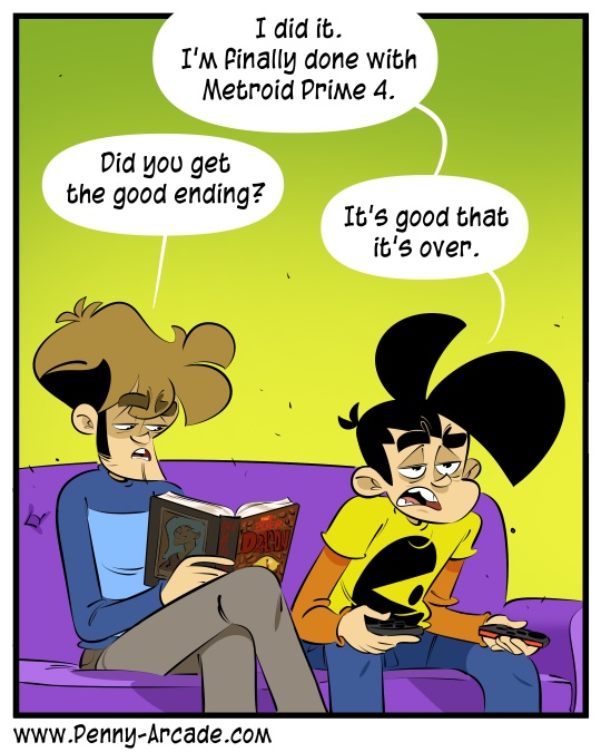 There was a boss that made him quit Metroid Prime 4, but he rallied later simply so the official record would not record him having been defeated by it. He ultimately found success, but it eroded what was left of his affection for the game. There's a lot of post-mortem content out there about the game's difficult birth, but the early part I played was cool and good! Maybe I just stop there.